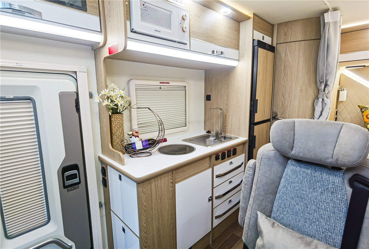 | 正副駕駛椅包 (中間菱形格) | 豪華衛(wèi)浴間 (ABS吸塑工藝) | 升降桌板(進(jìn)口單腿) | ||||||